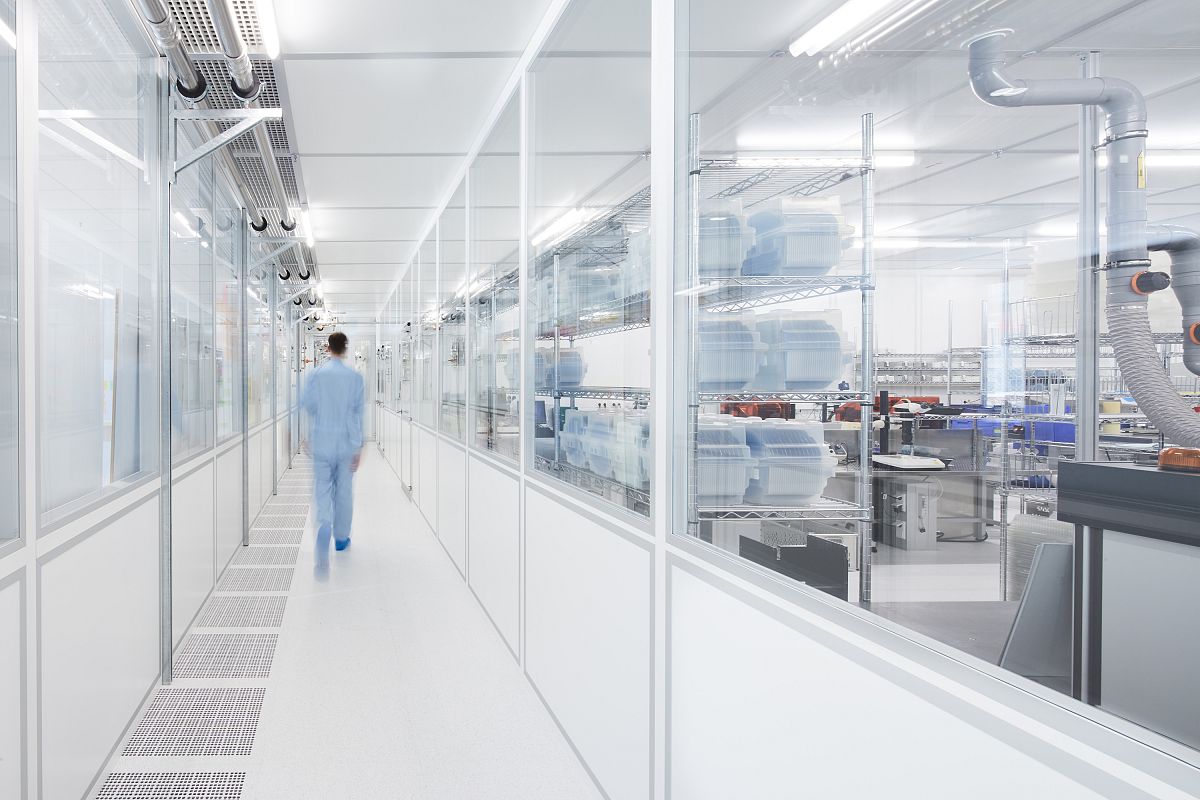 Für die Herstellung von Halbleitern haben Geiselmann+Hauff auf dem Gelände des Telefunkenparks eine Reinraumfabrik entworfen.